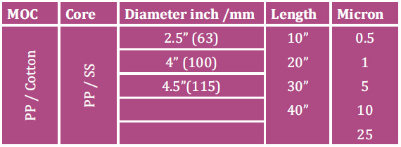 These cartridges are manufactured by PP cord wound on a PP core in a precise